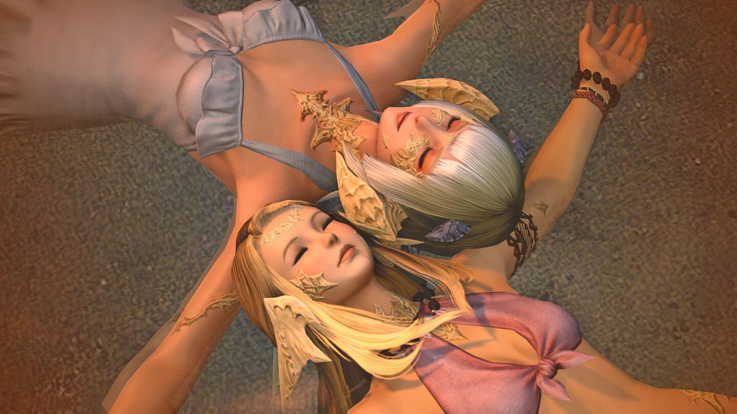 | Sons of the Sun, Daughters of the Moon | It is said that the Au Ra are born of Azim, the Dawn Father, and Nhaama, the Dusk Mother. While traditionally the Raen consider themselves to hold the blessing of Azim, and the Xaela that of Nhaama, some tales tell that after returning to the heavens, Azim loved his ever-separate wife so desperately that he descended to be among her people as one of them, fathering a Xaela clan. It tells further that, upon learning of this, Nhaama was greatly moved, and those tears she cried fell to the land and birthed daughters destined for Azim's sons. Yet in the same way that Azim became a Duskscale, the village believes that the tears of Nhaama begot Dawnscales. It is from these daughters that the village draws their heritage. |