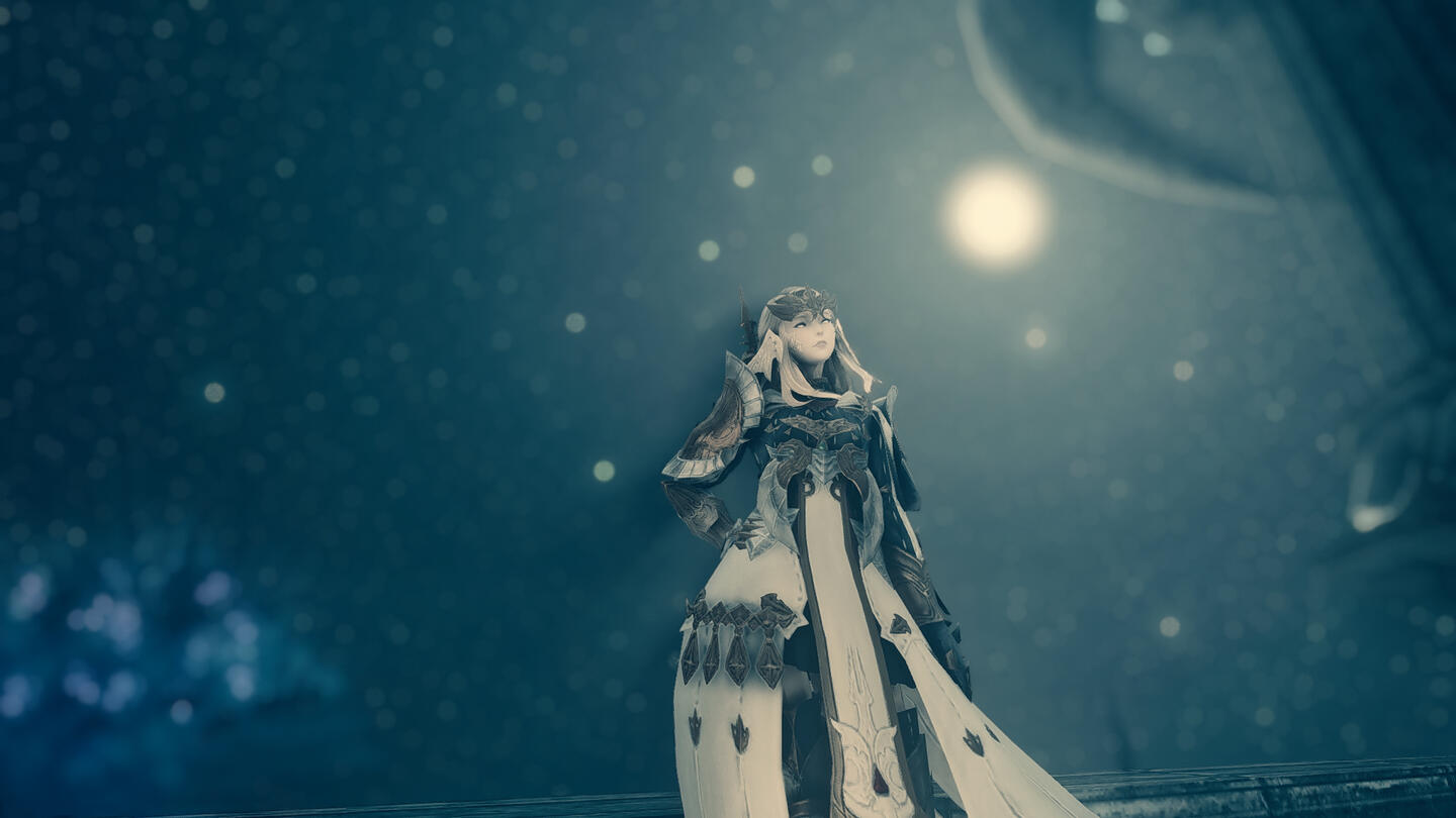 An unimposing Raen Au Ra, eyes bright as the moon and hair as if bleached by the sun. A perfection preserved by careful living. Soft features guarded by scales and spines; a rose with thorns.