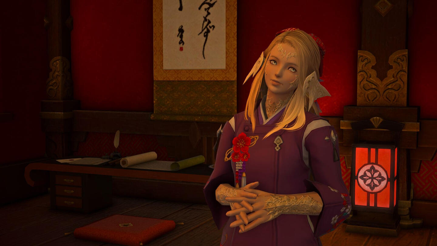 | Kugane Resident | Kugane is her home, and as such, she can oft be spied on the streets bouncing between the markets and the Ijin District. She's typically dressed according to the local custom, and seems quite comfortable so, garb reminiscent of a successful merchant's daughter. How strange is it, then, that she seemingly spends so much time among foreigners if she is herself local? |